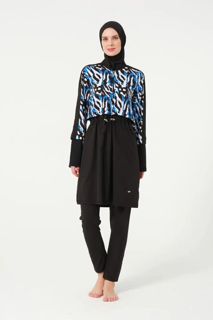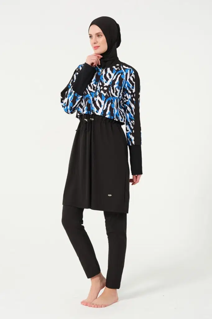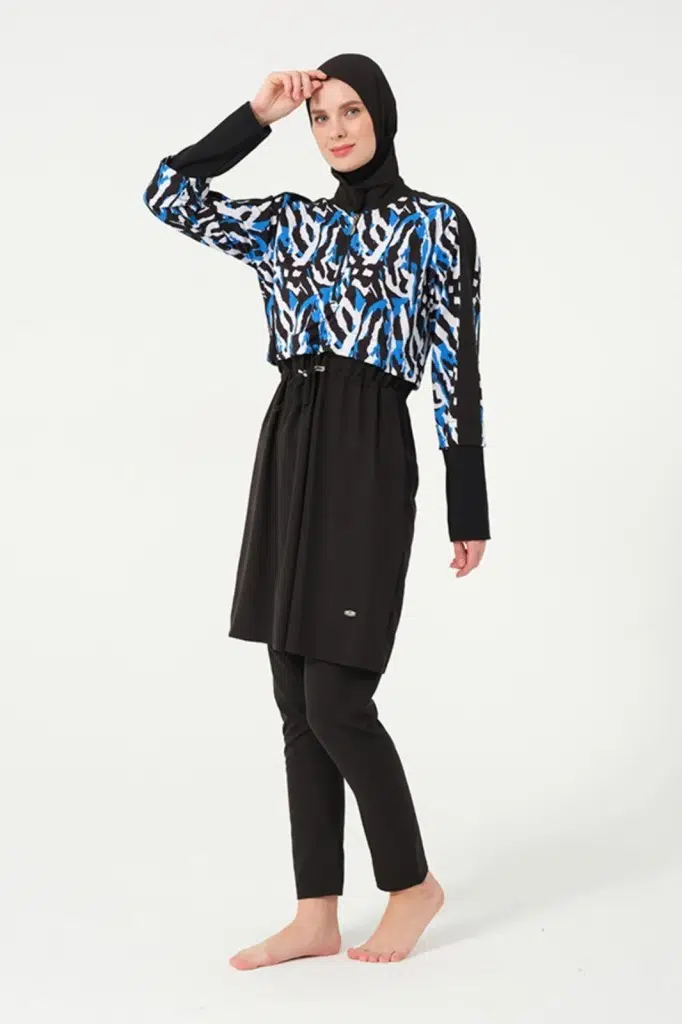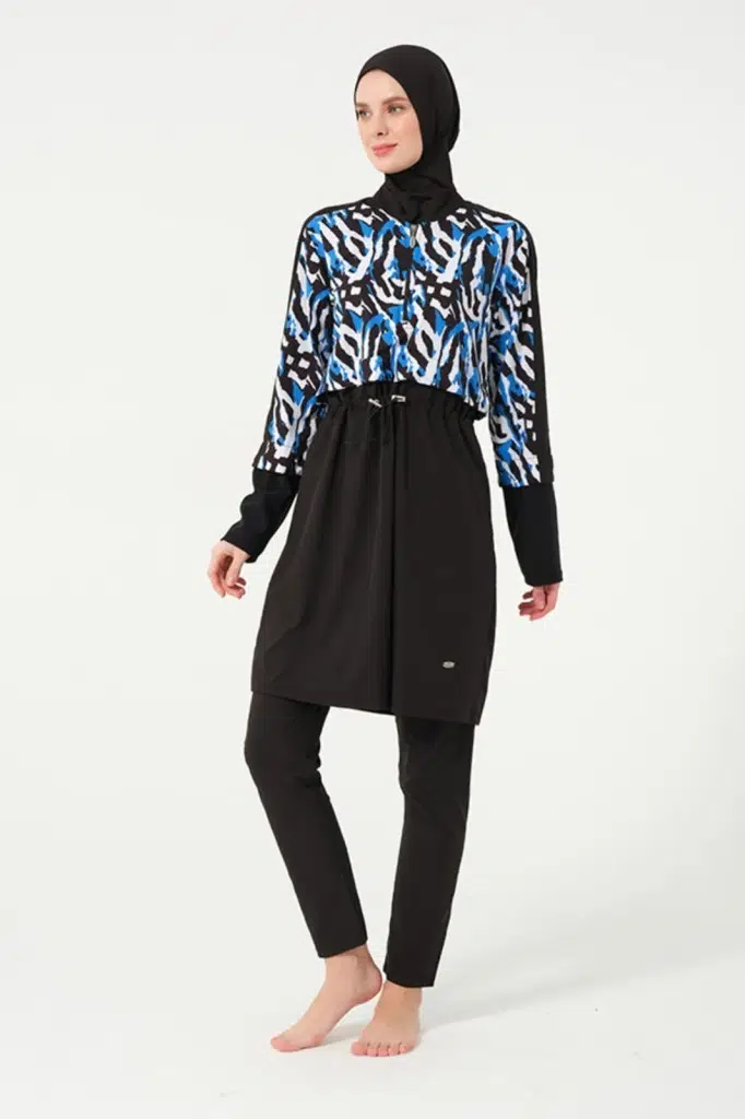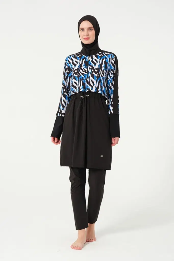 Tesmay 3012 Siyah Sporlycra Tam Boy Tasarım Tesettür Mayo